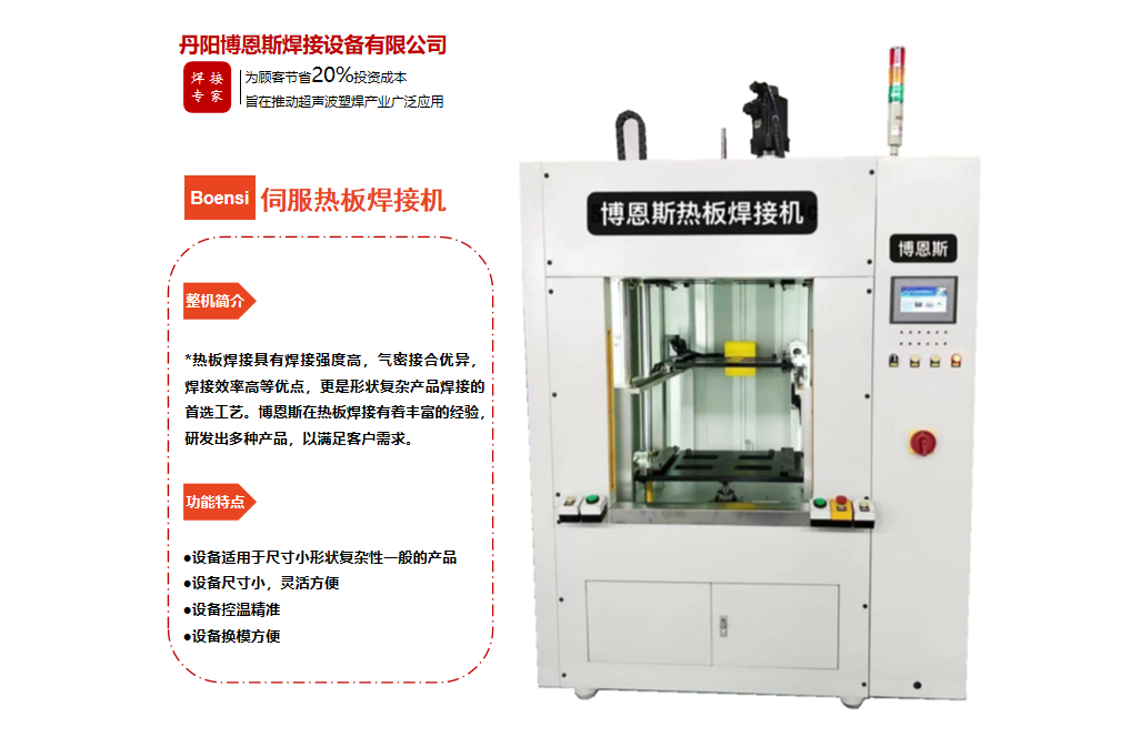 丹陽(yáng)博恩斯焊接設(shè)備有限公司是塑料焊接領(lǐng)域集研發(fā)設(shè)計(jì)、生產(chǎn)制造、銷售服務(wù)為一體的企業(yè)。公司自成立以來(lái)堅(jiān)持“以人為本”的理念,組織了一支強(qiáng)大的技術(shù)研發(fā)團(tuán)隊(duì),攜多年來(lái)積累的豐富經(jīng)驗(yàn),并結(jié)合國(guó)際先進(jìn)塑料焊接技術(shù),根據(jù)市場(chǎng)需要,不斷開(kāi)發(fā)具有核心競(jìng)爭(zhēng)力的新產(chǎn)品。公司具有很強(qiáng)的非標(biāo)機(jī)械研發(fā)、設(shè)計(jì)、生產(chǎn)能力,可為廣大客戶定制各類專用機(jī)械設(shè)備。公司設(shè)計(jì)生產(chǎn)的塑料焊接設(shè)備已廣泛應(yīng)用于汽車、電子、家電、醫(yī)療器械、無(wú)紡布...